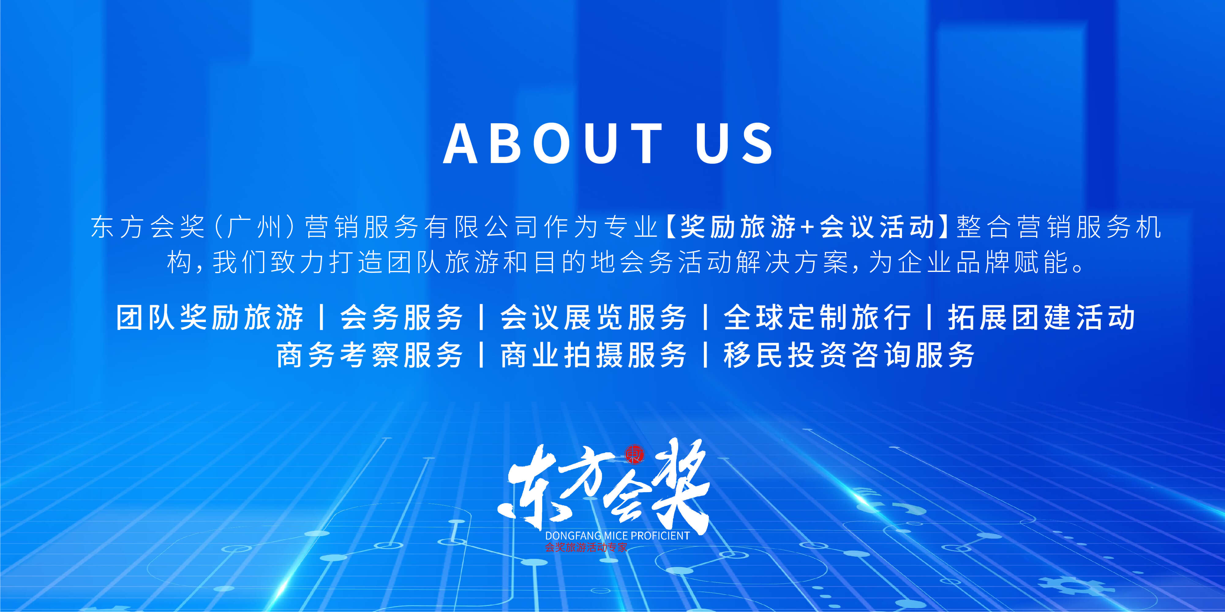 東方會(huì)獎(jiǎng)(廣州)營(yíng)銷服務(wù)有限公司 作為專業(yè)會(huì)獎(jiǎng)旅游活動(dòng)專家,我們致力打造專業(yè)團(tuán)隊(duì)旅游和目的地會(huì)務(wù)會(huì)展解決方案,為企業(yè)品牌賦能。 基于對(duì)商業(yè)客戶需求的深刻理解和豐富的服務(wù)經(jīng)驗(yàn),東方會(huì)獎(jiǎng)成功實(shí)現(xiàn)從單一服務(wù)到整合服務(wù)、從簡(jiǎn)單服務(wù)到高附加值服務(wù)、從線下服務(wù)到覆蓋線上線下的整合營(yíng)銷服務(wù)布局,旗下東方會(huì)獎(jiǎng)、途蘭朵旅行、左契文化、途蘭朵科技、全球開(kāi)拓者等各業(yè)態(tài)的專業(yè)子公司相繼成立。目前,東方會(huì)獎(jiǎng)已經(jīng)在中國(guó)主要經(jīng)濟(jì)區(qū)域建立了完善的服務(wù)網(wǎng)絡(luò),覆蓋廣州、深圳、佛山、杭州、成都、貴陽(yáng)、西安、福州、廈門(mén)、桂林、長(zhǎng)沙等核心城市。 成立至今,東方會(huì)獎(jiǎng)一直專注于為新零售、保險(xiǎn)、金融、直銷等機(jī)構(gòu)客戶提供“一站式”整合營(yíng)銷服務(wù),業(yè)務(wù)涵蓋:團(tuán)隊(duì)獎(jiǎng)勵(lì)旅游,目的地會(huì)務(wù)服務(wù),會(huì)議展覽服務(wù),全球定制旅行,拓展團(tuán)建活動(dòng),商務(wù)考察服務(wù),專業(yè)旅行拍攝服務(wù)。為企業(yè)品牌實(shí)現(xiàn)真正的全案整合營(yíng)銷。